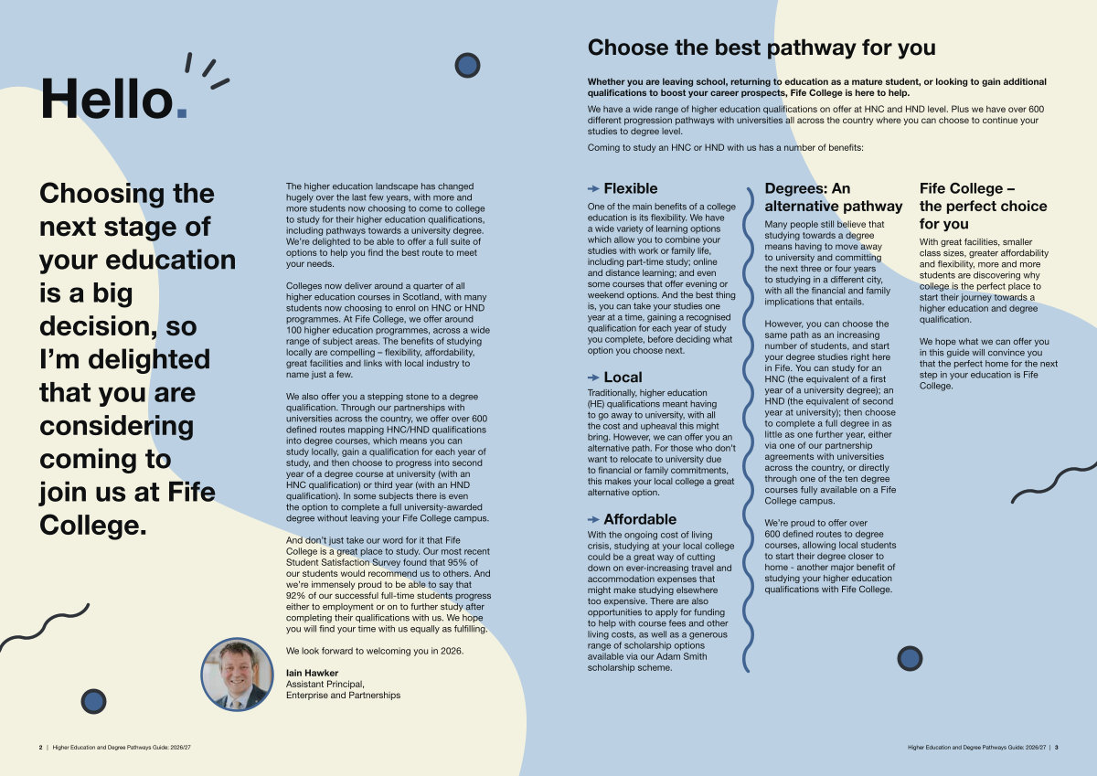 Choosing the next stage of your education is a big decision, so I’ m delighted that you are considering coming to join us at Fife College.