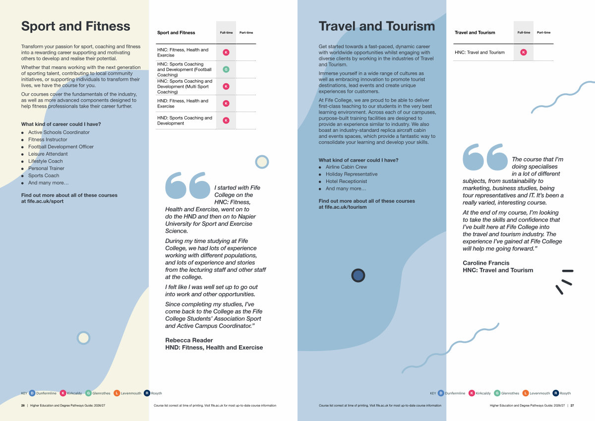 Course list correct at time of printing. Visit fife. ac. uk for most up-to-date course information Higher Education and Degree Pathways Guide: 2026 / 27 | 27