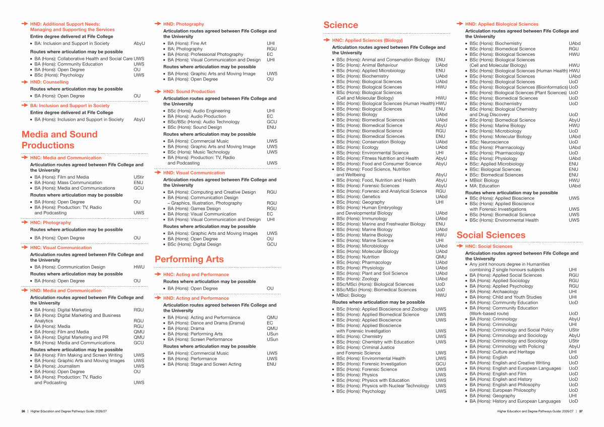 Articulation routes agreed between Fife College and | |