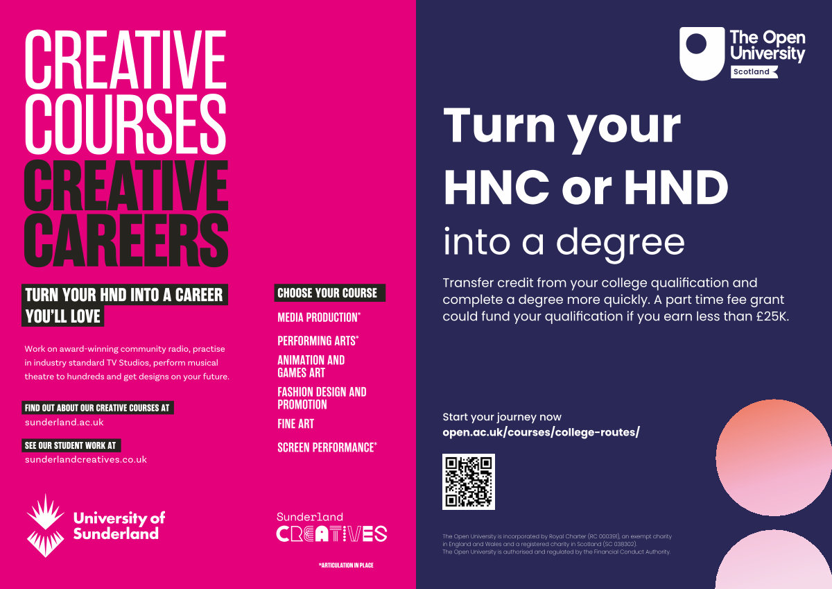 FIND OUT ABOUT OUR CREATIVE COURSES AT sunderland. ac. uk