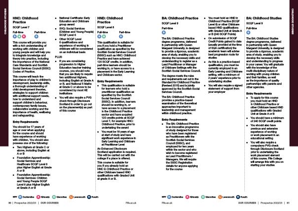 To apply for this course you must hold an HND in Childhood Practice or other Childcare based HND qualifications with Graded Unit at Grade A or B