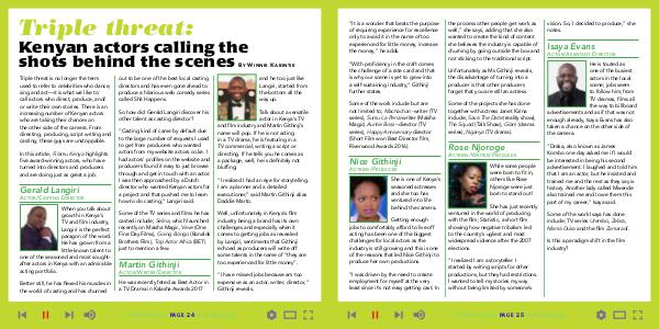 When you talk about growth in Kenya’ s TV and film industry, Langiri is the perfect paragon of the word. He has grown from a little-known talent to one of the seasoned and most soughtafter actors in Kenya with an admirable acting portfolio.