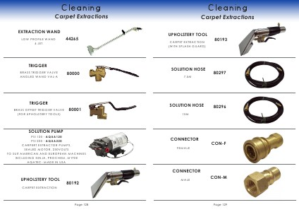 Cleaning Carpet Extractions UPHOLSTERY TOOL CARPET EXTRACTION (WITH SPLASH GUARD) SOLUTION HOSE 7.5M SOLUTION HOSE 80193 80297 80296 15M CONNECTOR FEMALE CONNECTOR MALE CON-F CON-M Page 129
