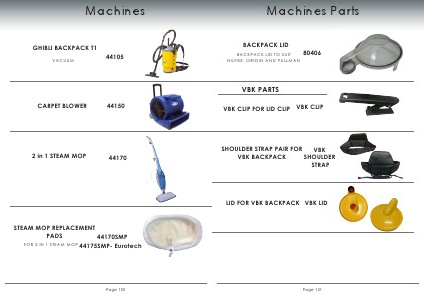 Machines GHIBLI BACKPACK T1 VACUUM 44105 CARPET BLOWER 44150 2 in 1 STEAM MOP 44170 STEAM MOP REPLACEMENT PADS 44170SMP FOR 2 IN 1 STEAM MOP 44175SMP- Eurotech Page 130