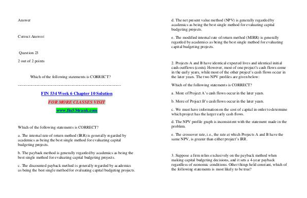 FIN 534 Week 6 Chapter 10 Solution