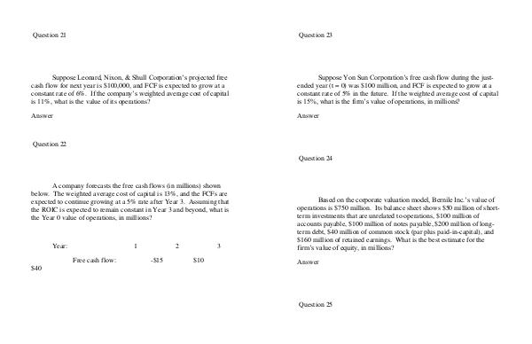 A company forecasts the free cash flows (in millions) shown