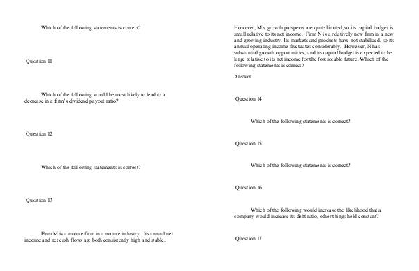 Firm M is a mature firm in a mature industry. Its annual net