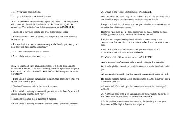 25. A 10-year bond pays an annual coupon. The bond has a yield to