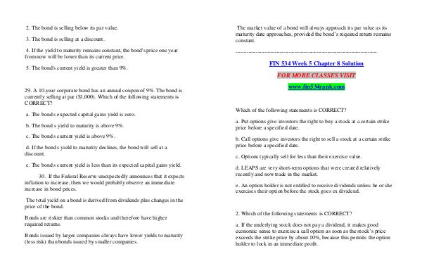 d. If the bond s yield to maturity declines, the bond will sell at a