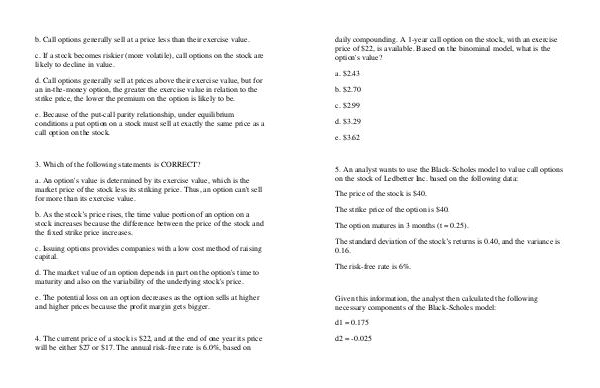 c. If a stock becomes riskier( more volatile), call options on the stock are likely to decline in value.