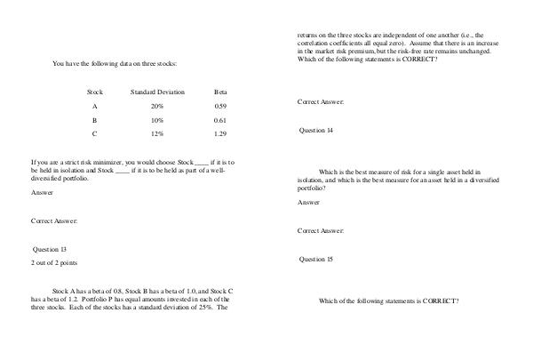 returns on the three stocks are independent of one another (i.e., the