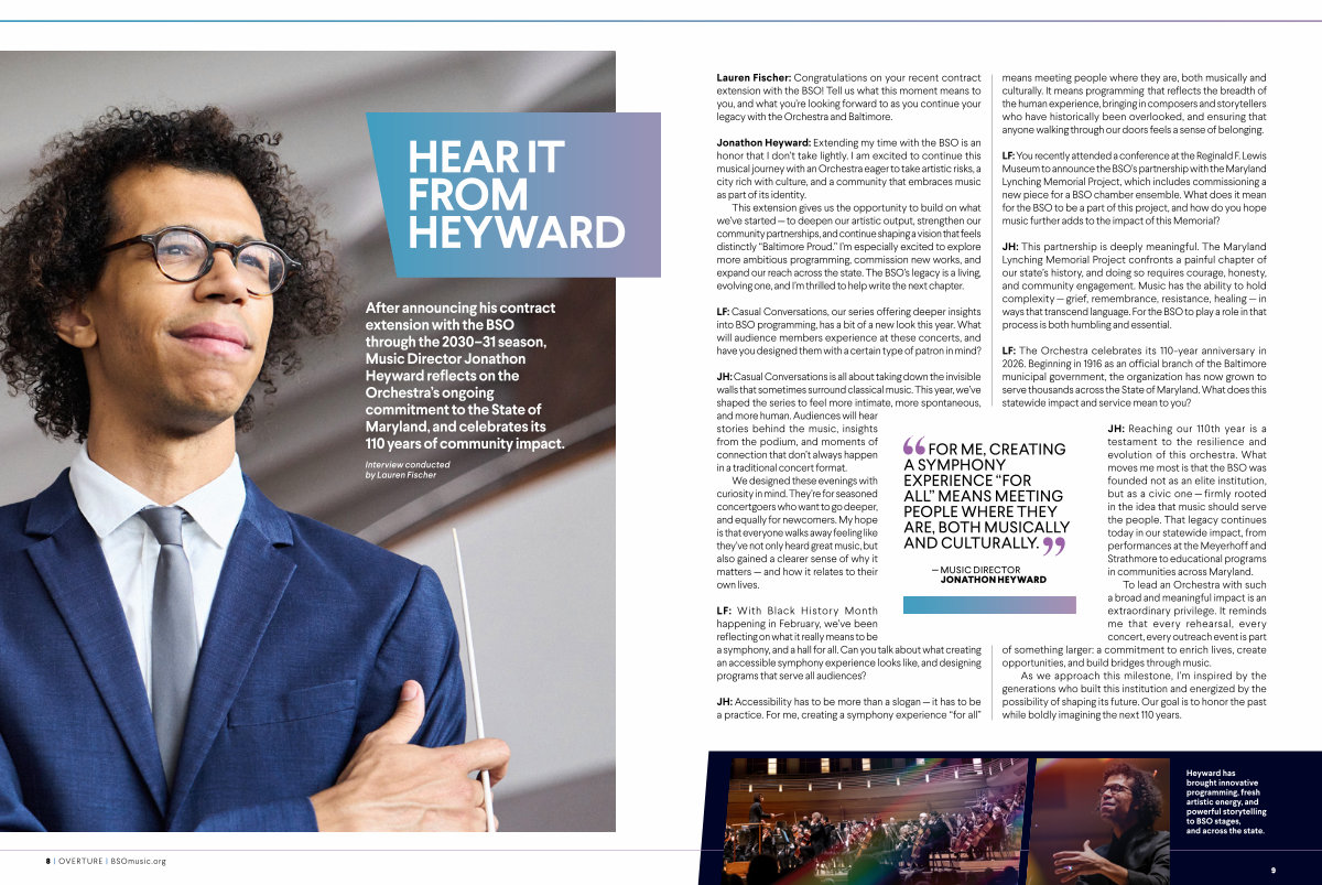 After announcing his contract extension with the BSO through the 2030 – 31 season, Music Director Jonathon Heyward reflects on the Orchestra’ s ongoing commitment to the State of Maryland, and celebrates its 110 years of community impact.