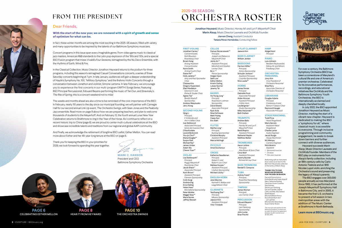 In July 2022, the BSO appointed Jonathon Heyward as Music Director, marking the start of a vibrant new chapter. Heyward is dedicated to making the BSO a " symphony for all," where classical music is accessible to everyone. Through inclusive programming and community engagement, he seeks to break down barriers and further connect with diverse audiences. Heyward succeeds Marin Alsop, Music Director Laureate and OrchKids Founder. Members of the BSO play on instruments from Alsop’ s family collection, including an 18th-century cello by Carlo Antonio Testore and an 1810 Nicolas Lupot violin, enriching the Orchestra’ s sound and preserving the legacy of Alsop’ s parents.