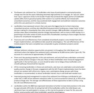 • Total area and cost-effectiveness from completed streambank projects is very limited from LDC Project implementation , and additional data would be advantageous . The cost-effectiveness of the limited projects that were completed was comparable to gully remediation projects overall .