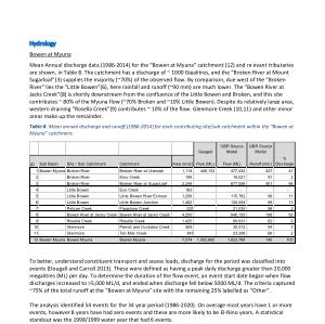 Table 8 . Mean annual discharge and runoff ( 1986-2014 ) for each contributing site / sub-catchment within the “ Bowen at Myuna ” catchment .