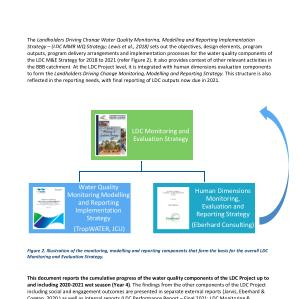 This document reports the cumulative progress of the water quality components of the LDC Project up to and including 2020-2021 wet season ( Year 4 ). The findings from the other components of the LDC Project including social and engagement outcomes are presented in separate external reports ( Jarvis , Eberhard & Coggan , 2020 ) as well as internal reports ( LDC Performance Report – Final 2021 ; LDC Monitoring & Evaluation : Lessons from a grassroots approach ).