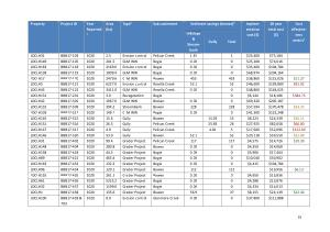 LDCLH17 BBB17-120 2020 2479.6 GLM WW Bowen 453 453 $ 38,860 $ 115,026 $ 11.27 LDCLH5 BBB17-121 2020 6227.0 Erosion control Rosella Creek 52.1 52 $ 46,600 $ 139,800 $ 91.92 LDCLH45 BBB17-122 2020 3411.0 GLM WW Rosella Creek 0.00 0 $ 48,860 $ 144,625 LDCLH131 BBB17-201 2020 3.0 Revegetation Bogie 0 $ 6,144 $ 18,186 $ 384.73 LDCLH42 BBB17-305 2020 1967.6 GLM WW Broken 0.00 0 $ 69,320 $ 205,187 LDCLH132 BBB17-309 2020 394.2 Streambank Bowen 228 228 $ 57,594 $ 170,478 $ 33.25 LDCLH103 BBB17-311 2020 149.1 GLM WW Bogie 0.00 0 $ 41,300 $ 122,248 LDCLH145 BBB17-315 2020 15.6 Gully Bowen 15.29 15 $ 8,223 $ 24,339 $ 26.11 LDCLH151 BBB17-316 2020 26.3 Gully Pelican Creek 25.83 26 $ 27,925 $ 82,658 $ 66.80 LDCLH147 BBB17-317 2020 4.9 Gully Pelican Creek 4.81 5 $ 17,600 $ 52,096 $ 152.00 LDCLH146 BBB17-320 2020 53.0 Gully Bowen 52.1 52 $ 20,118 $ 59,550 $ 31.89 LDCLH31 BBB17-402 2020 99.4 Grader Project Pelican Creek 117 117 $ 4,575 $ 14,726 $ 10.39 LDCLH148 BBB17-404 2020 280.8 Grader Project Bowen 0.00 0 $ 4,350 $ 14,060 LDCLH158 BBB17-418 2020 44.5 Grader Project Bogie 0.09 0 $ 5,900 $ 17,464 LDCLH89 BBB17-421 2020 463.4 Grader Project Bogie 0.00 0 $ 10,040 $ 30,902 LDCLH163 BBB17-432 2020 132.3 Grader Project Bogie 0.00 0 $ 4,415 $ 104,784 LDCLH96 BBB17-434 2020 120.1 Grader Project Bowen 112 112 $ 19,956 $ 6.13 LDCLH155 BBB17-435 2020 261.5 Grader Project Bowen 0.00 0 $ 4,950 $ 15,836 LDCLH61 BBB17-436 2020 5225.2 Grader Project Bogie 0.00 0 $ 4,288 $ 13,876 LDCLH32 BBB17-437 2020 1199.0 Grader Project Bogie 0.00 0 $ 4,334 $ 14,013 LDCLH1 BBB17-438 2020 135.6 Grader Project Bowen 36.9 37 $ 8,155 $ 24,139 $ 22.46 LDCLH100