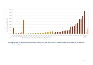 Figure 4 . Results of the cost-effectiveness metric presented for each project type 2018 – 2021 presented in Table 4 . Note that the results <$ 1.00 / tonne and >$ 600 / tonne are excluded from this figure .