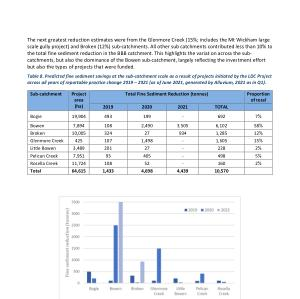 Table 8 . Predicted fine sediment savings at the sub-catchment scale as a result of projects initiated by the LDC Project across all years of reportable practice change 2019 – 2021 ( as of June 2021 , generated by Alluvium , 2021 as in Q1 ).