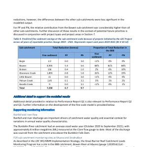 Table 9 . Predicted fine sediment savings at the sub-catchment scale because of projects initiated by the LDC Project across all years of reportable practice change 2019 – 2021 . Represents report card years 2019-2021 ( RC # 10-12 )