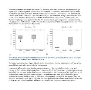 There was some flow recorded at the control site , however , there were issues with the velocity readings , appearing to relate to high flow turbulence which resulted in no useful data . The sensors were rotated in 2021 to face upstream ( away from the turbulent area ) to improve their performance . The sediment and nutrient loads for the control site were calculated using the recorded depth during events across the 2020- 21 wet season . The flow characteristics of the Mt Wickham control site which has a similar profile and channel morphology , were applied at this site . This is a reasonable approach given we are not comparing between control and treatment sites for this year . However , no runoff data or samples were collected from the treatment site due to shallow flow depths .