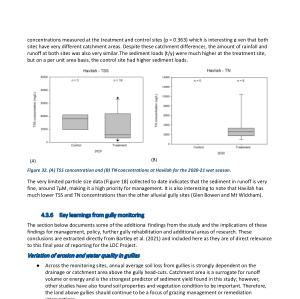 The section below documents some of the additional findings from the study and the implications of these findings for management , policy , further gully rehabilitation and additional areas of research . These conclusions are extracted directly from Bartley et al . ( 2021 ) and included here as they are of direct relevance to this final year of reporting for the LDC Project .