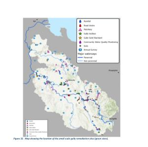 Figure 33 . Map showing the location of the small scale gully remediation sites ( green stars ).