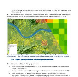 36 . Example of the high resolution semi-automated mapped gullies based on LiDAR data , compared to the underlying 100m x 100m grid gully density map previously available for prioritisation . Source : Brooks et al . ( 2018 ).