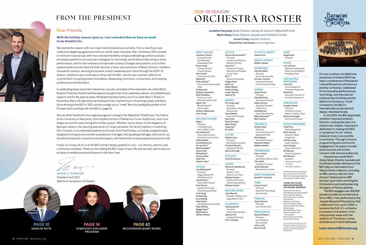 In July 2022, the BSO appointed Jonathon Heyward as Music Director, marking the start of a vibrant new chapter. Heyward is dedicated to making the BSO a " symphony for all," where classical music is accessible to everyone. Through inclusive programming and community engagement, he seeks to break down barriers and further connect with diverse audiences. Heyward succeeds Marin Alsop, Music Director Laureate and OrchKids Founder. Members of the BSO play on instruments from Alsop’ s family collection, including an 18th-century cello by Carlo Antonio Testore and an 1810 Nicolas Lupot violin, enriching the Orchestra’ s sound and preserving the legacy of Alsop’ s parents.
