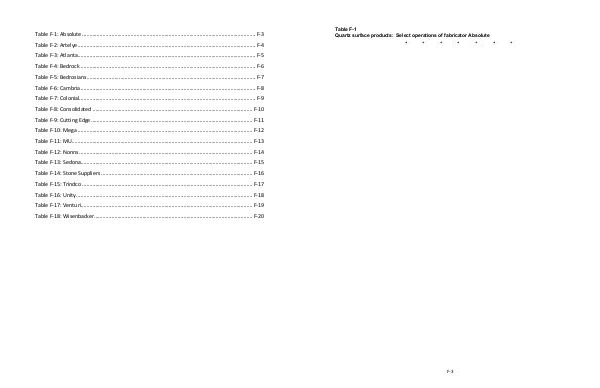 Table F-14: Stone Suppliers ....................................................................................................... F-16
