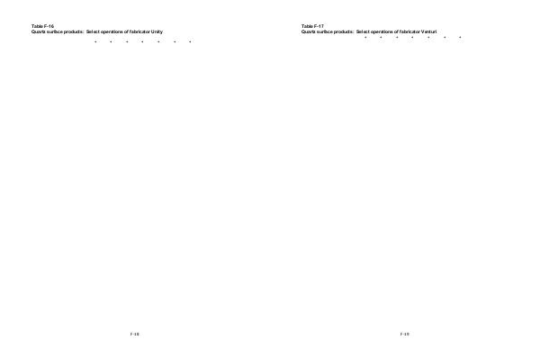 Table F-16 Quartz surface products: Select operations of fabricator Unity * * * * F-18 * * *