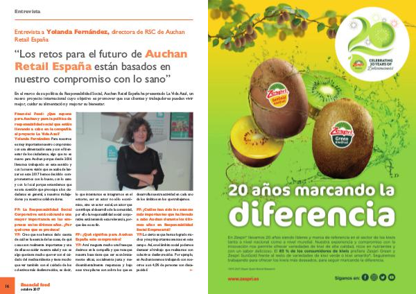 FF: ¿ Qué significa para Auchan España este compromiso? YF: A mí me gusta mucho una frase que decimos en la compañía y que reza que nuestra base tiene que ser económicamente eficaz, socialmente justa y medioambientalmente respetuosa y bajo esos tres pilares son sobre los que se desarrolla nuestra actividad en cada uno de los ámbitos en los que trabajamos.