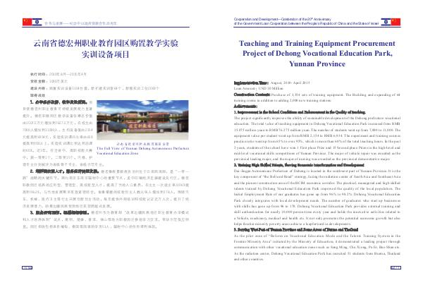 education. The total value of teaching equipment in Dehong Vocational Education Park increased from RMB