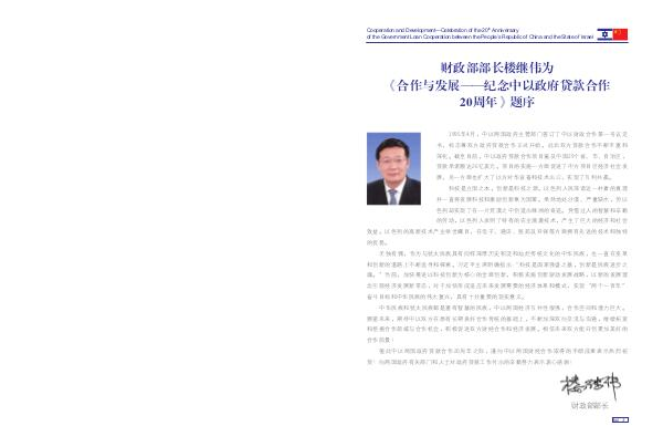 财政部部长楼继伟为 《合作与发展—— 纪念中以政府贷款合作 20 周年》题序