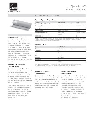 The sound rated material shall be QuietZone Acoustic Floor mat as supplied by Owens Corning.