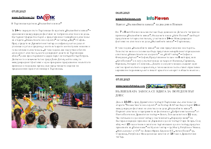 На 7 и 8 май Плевен за осми път ще бъде домакин на Детските театрални празници „Вълшебната завеса”. На сцената в зала „Катя Попова” ще бъдат представени четири спектакъла, участвали в 14-ия Международен фестивал на спектакли за деца „Вълшебната завеса” – Търговище.