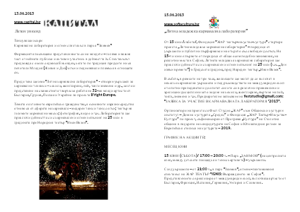 Преди това ще има "Лятна карнавална лаборатория" - отворен уъркшоп за карнавални техники - кокили, жонглиране, пой, тояги знамена и др., както и представяне на съвместната творческа работа на 32-ма млади артисти от България, Грузия, Полша и Украйна по проекта B’right Europe.