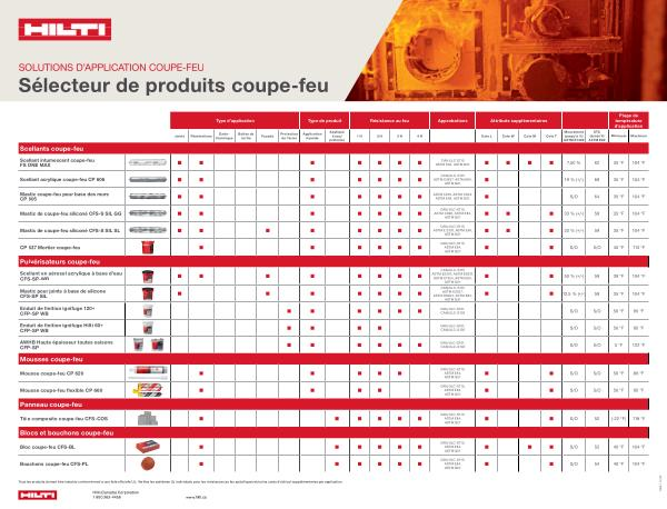Type d’ application Type de produit Résistance au feu Approbations Attributs supplémentaires |