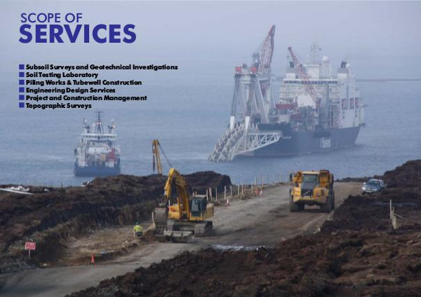 Subsoil Surveys and Geotechnical Investigations Soil Testing Laboratory Piling Works & Tubewell Construction Engineering Design Services Project and Construction Management Topographic Surveys