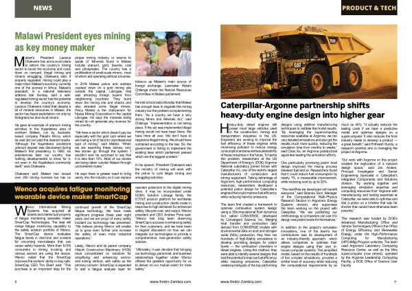 Lately , Wenco and its parent company Hitachi Construction Machinery ( HCM , have concentrated on solutions for simplifying and enhancing end-toend mining venture , with safety as the primary concern . SmartCap is expected to add a fatigue analysis layer for tobacco as Malawi ’ s main source of foreign exchange . Lawmaker Welani Chilenga chairs the Natural Resources Committee in Malawi parliament .