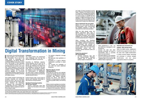 and safety of mining operations into the future . Therefore , the Industrial Internet of Things ( IIoT ) is transforming industries across the world . The Mining industry is in a prime position to benefit from the adoption of digital technology across its operations . There is no longer any need to wait , because the technology has now matured and is ready to be implemented .