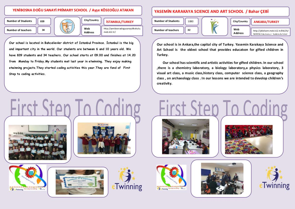 etwinning projects.They started coding activities this year.They are fond of First