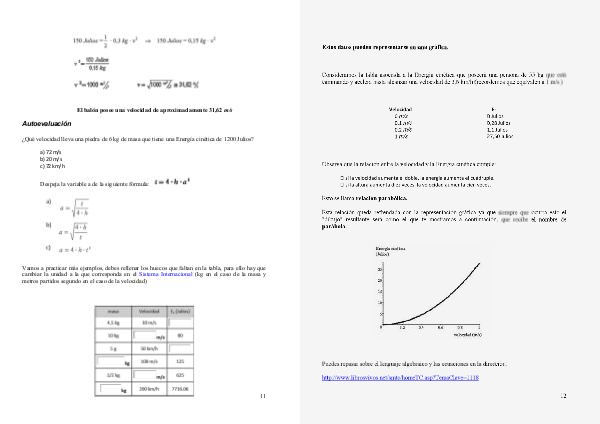 metros partidos segundo en el caso de la velocidad)