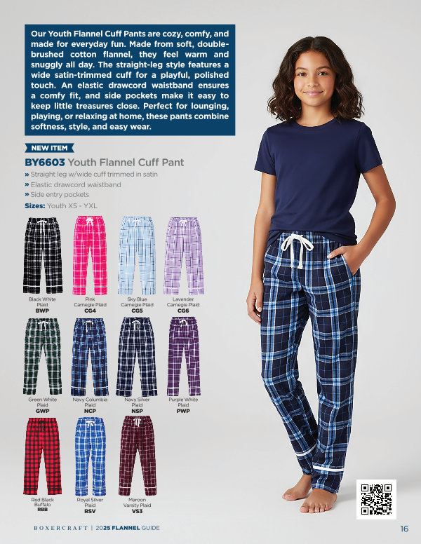 BY6603 Youth Flannel Cuff Pant
