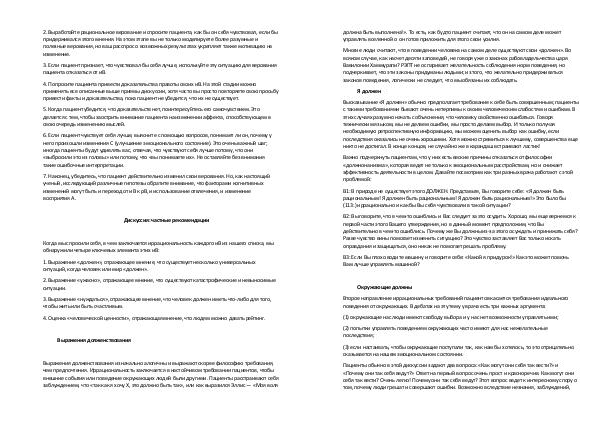 Второе направление иррациональных требований пациентов касается требования идеального поведения от окружающих. В дебатах на эту тему у врача есть три важных аргумента: