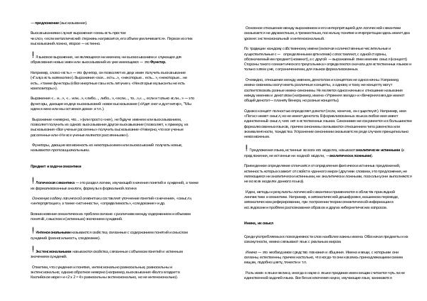Основную задачу логической семантики составляет уточнение понятий «значение», «смысл»,