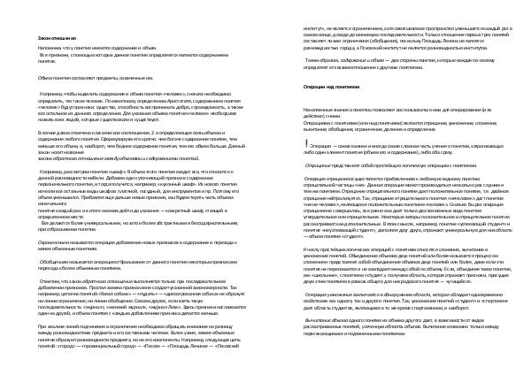 Таким образом, содержание и объем— две стороны понятия, которые каждая по-своему определяет его взаимоотношения с другими понятиями.