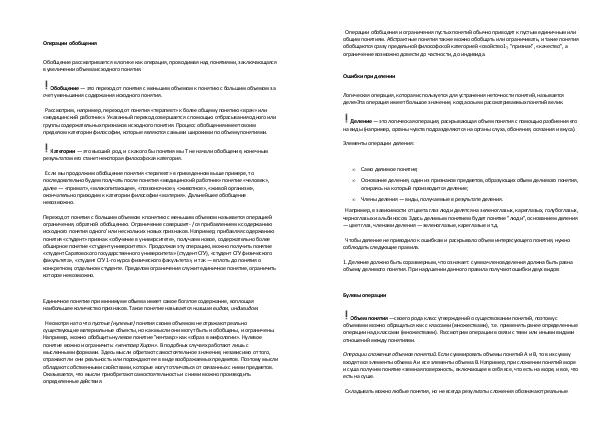Обобщение рассматривается в логике как операция, проводимая над понятиями, заключающаяся в увеличении объема исходного понятия.