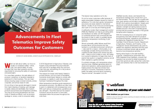 If a vehicle ’ s storage unit ’ s temperature enters warning zones , Webfleet generates alerts for drivers and operators , raising awareness and helping reduce the response window from minutes to moments . Awareness is half the battle ; the earlier we know about something “ beyond normal ”, the easier it is to fix .