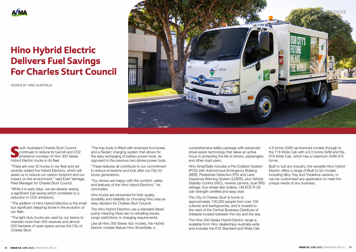 South Australia’ s Charles Sturt Council continues to reduce its fuel bill and CO2 emissions courtesy of Hino 300 Series Hybrid Electric trucks in its fleet.
